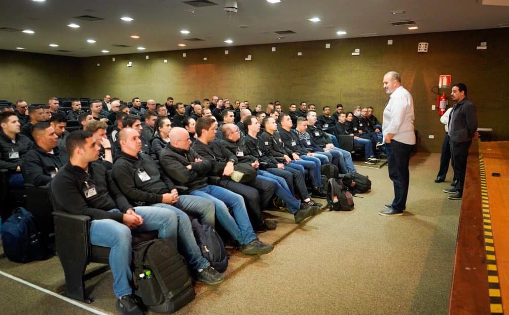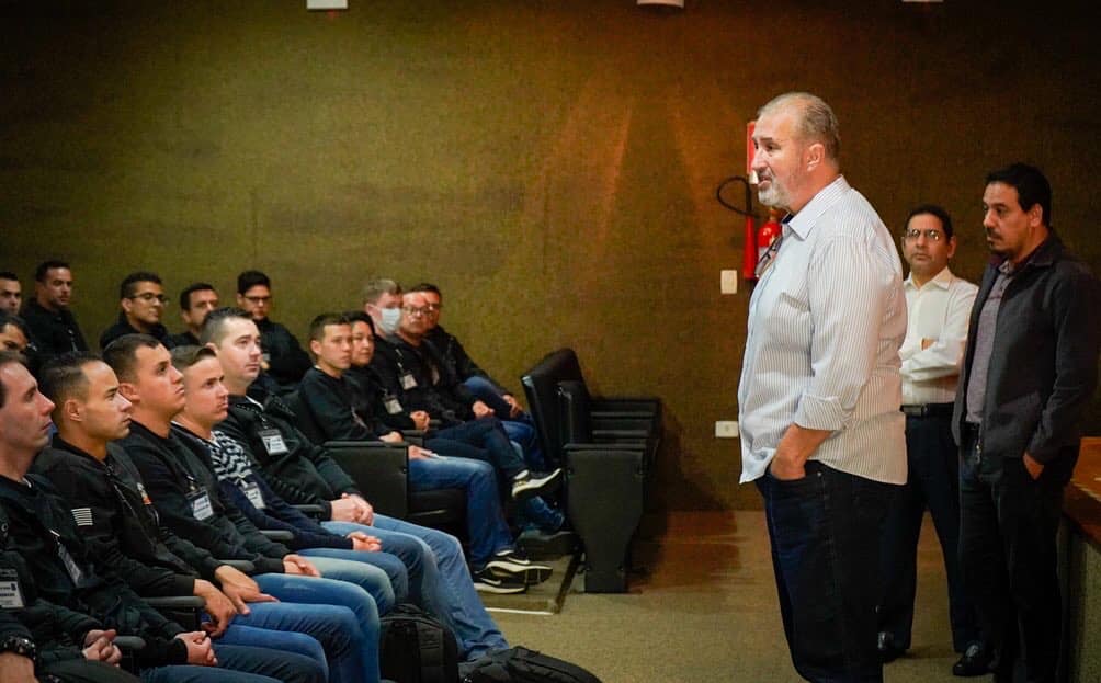 Palestrando no Curso de Formação com o tema “Segurança Pública no âmbito municipal e as perspectivas das Guardas Municipais assumindo o protagonismo local”.